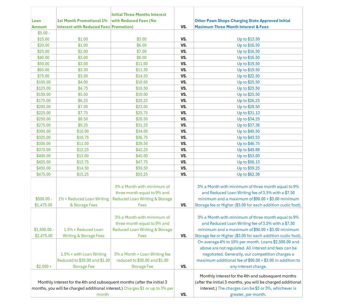 We match or beat any written jewelry loan agreement.